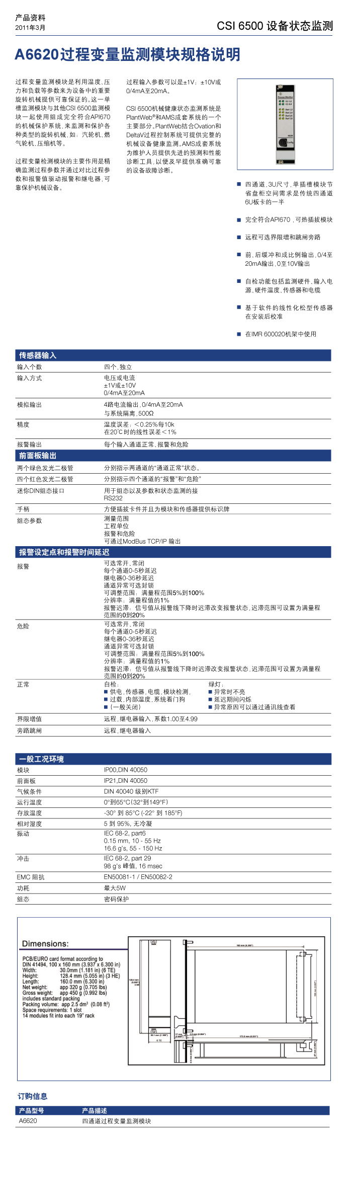 A6620过程变量监测模块规格说明书