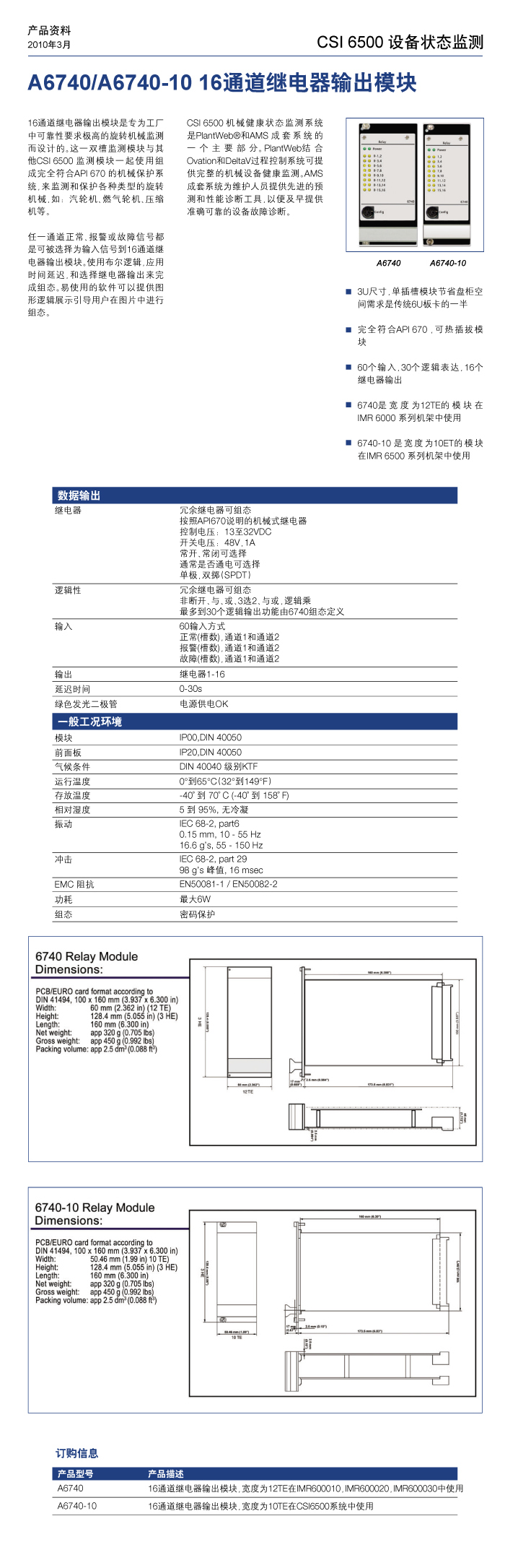 A6740/A6740-10 16通道继电器输出模块规格说明书