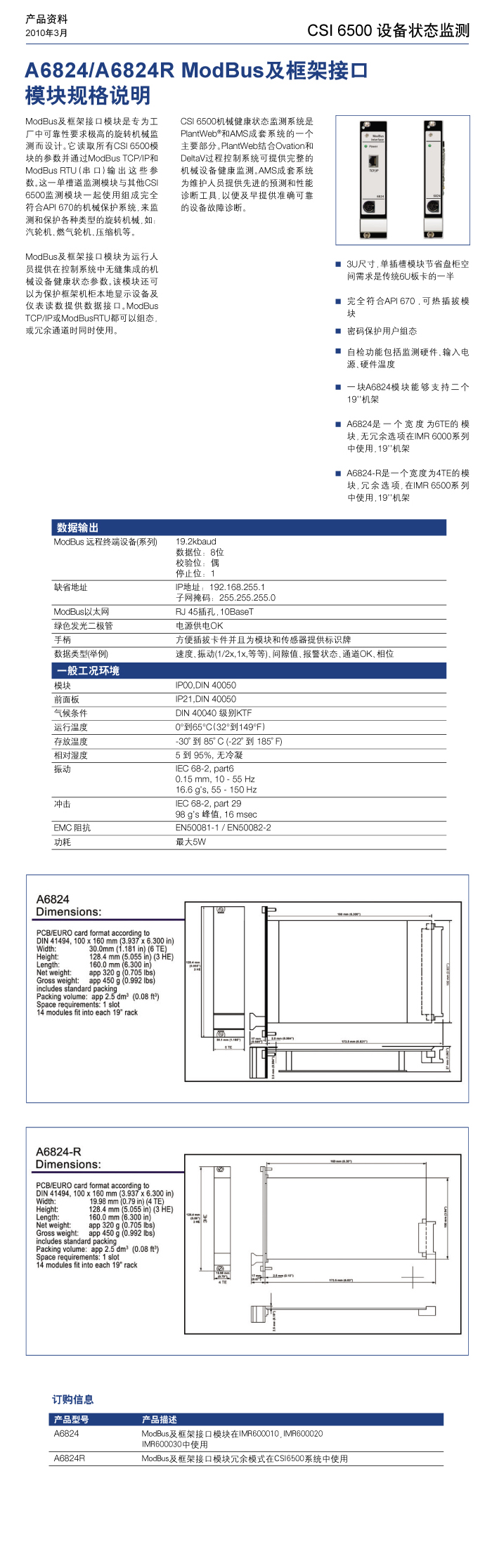 A6824/A6824R ModBus及框架接口模块规格说明书