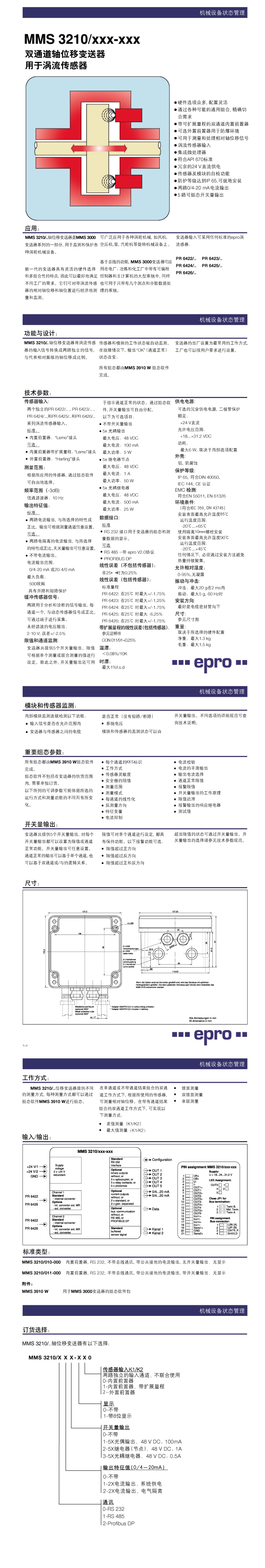 MMS3210/XXX-XXX双通道轴位移变送器规格说明书(用于涡流传感器)